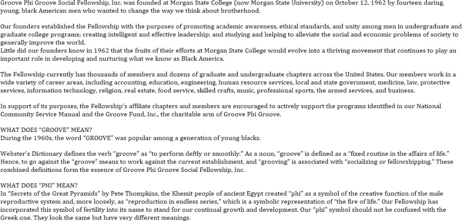 History of Groove Phi Groove - North Texas Graduate Chapter of Groove Phi Groove Social Fellowship Inc
